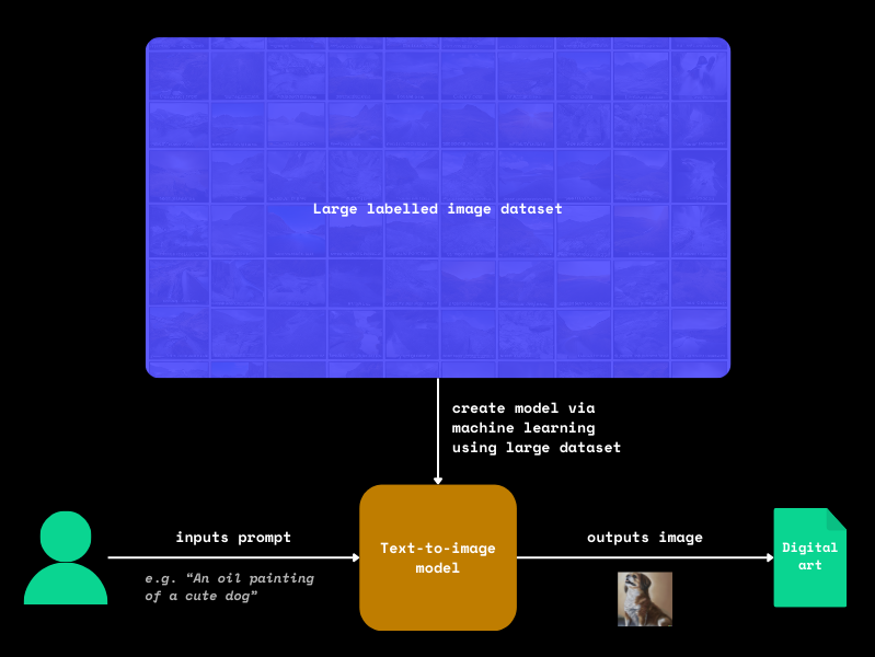 The AI artist prompts the model trained from the dataset to produce the piece of art