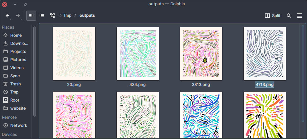 Uncurated set of outputs from a generative art algorithm