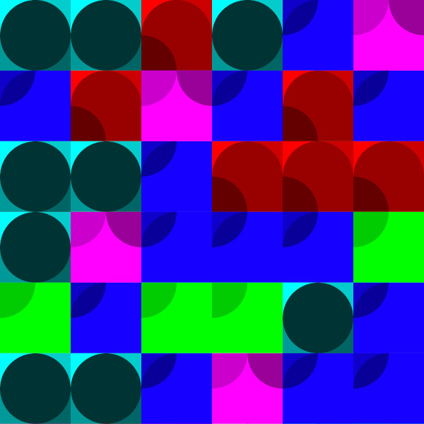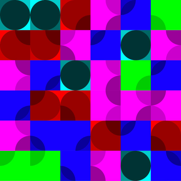 I added big off-grid circles, which manifested as different color schemes for intersecting tiles.
