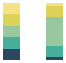 Uniform palette distribution (left) and normal distribution (right, not to scale!)