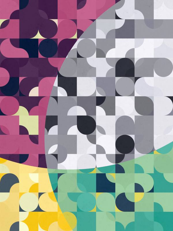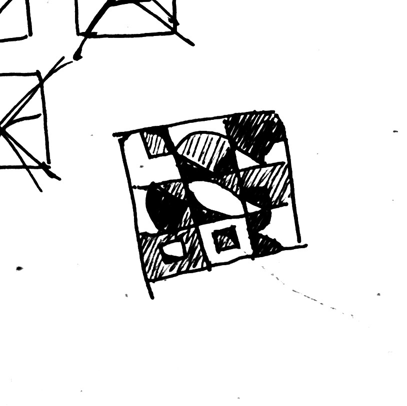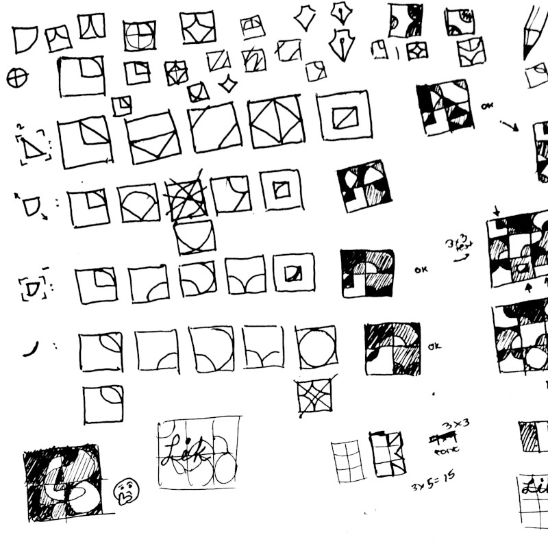 The main idea was that the whole image would be a random arrangement of square tiles. The tiles would be laid out side-by-side with no overlaps nor gaps. The resulting geometric pattern itself would be the source of aesthetic value.